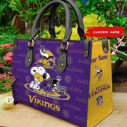 Minnesota Vikings Printed Custom Leather Hand Bag For Women Sport Wear Fans