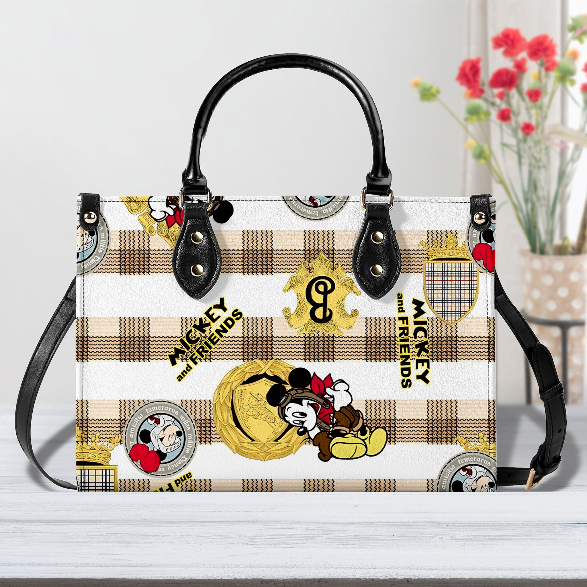 Minnie Mouse x Christian Dior Cute Leather Handbags, Crossbody Shoulder Bag Lady Simple Style