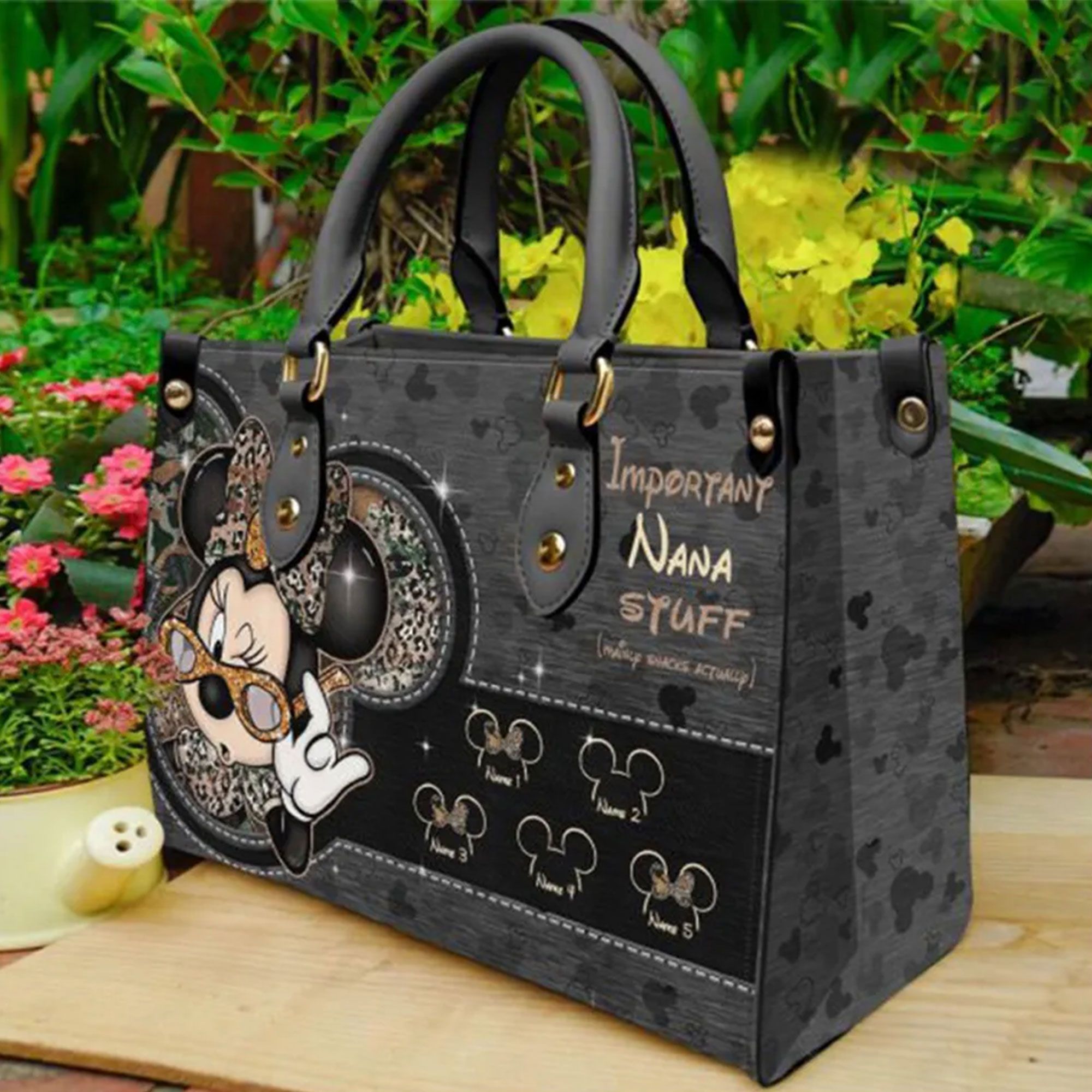 Minnie Mouse Lover Disney Gifts Important Nana Personalized Grandma Leopard Pattern Leather Handbag