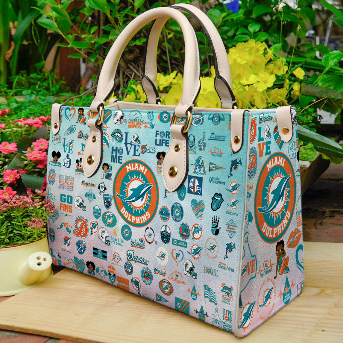 Miami Dolphins Leather Hand Bag For Women Sport Wear Fans