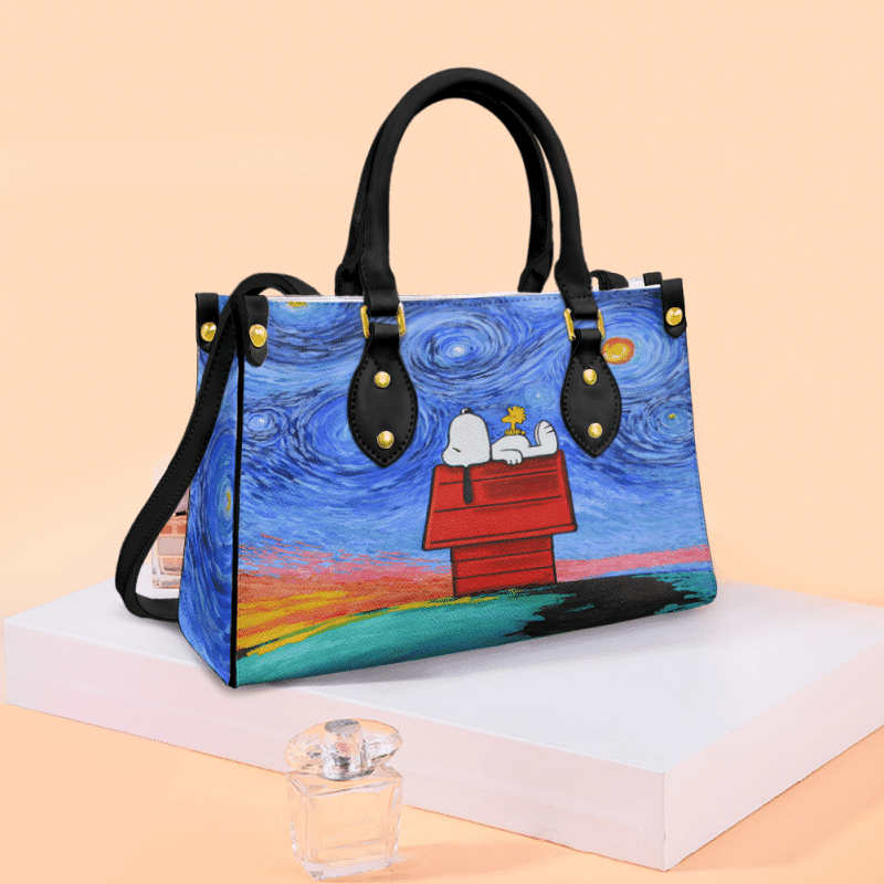 Snoopy And Woodstock In The Starry Night With Sunset End Leather Bag Handbag
