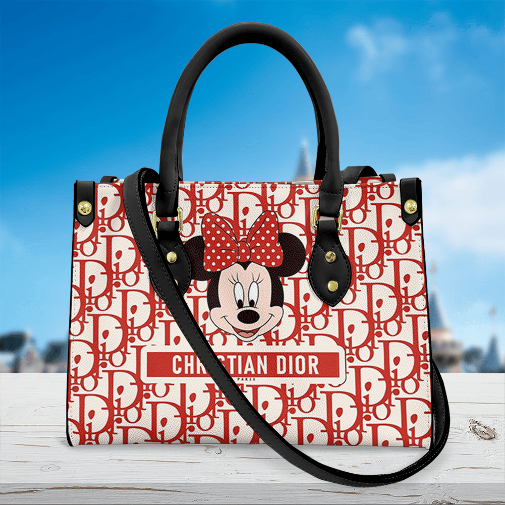 Christian Dior Minnie Mouse Cute Leather Handbags, Crossbody Shoulder Bag Lady Simple Style