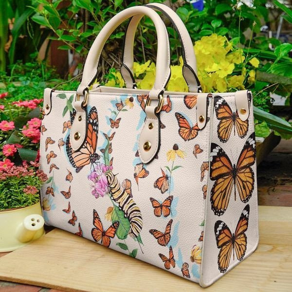 Butterfly Combination Of Monarch And Milkweed Leather Bag Handbag