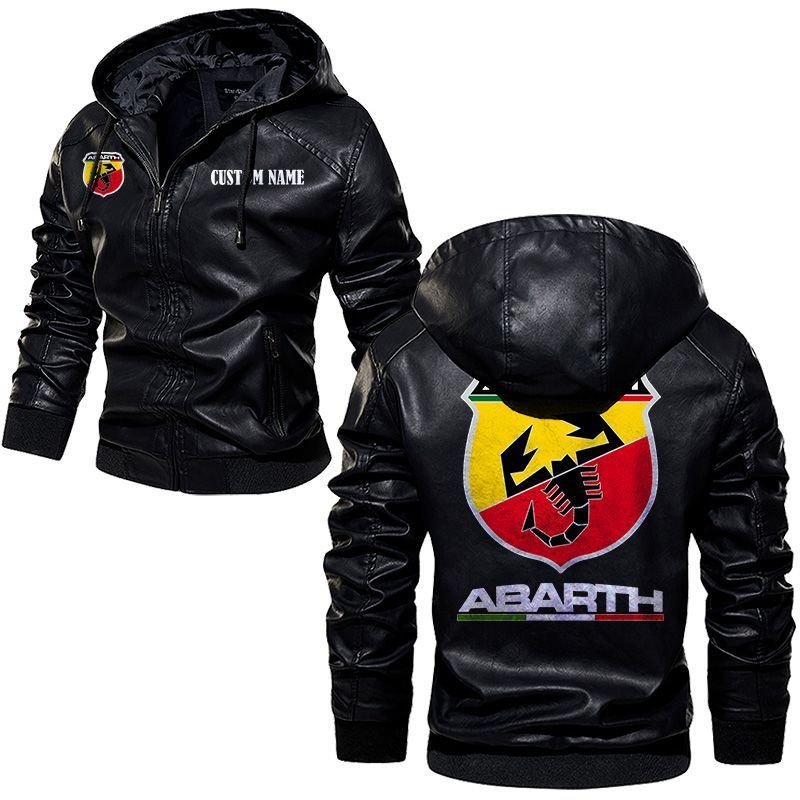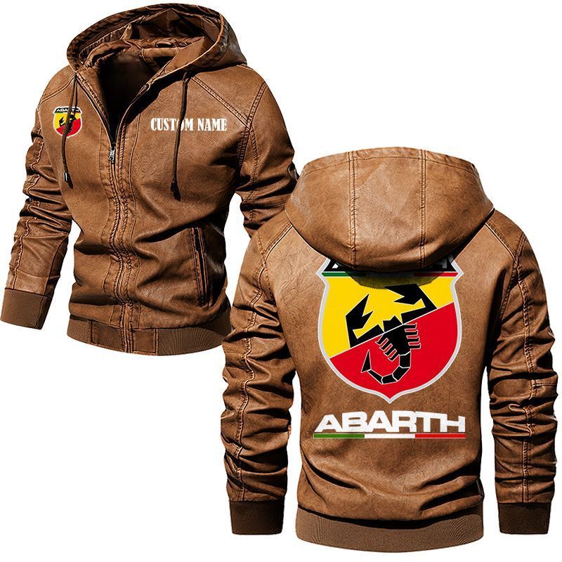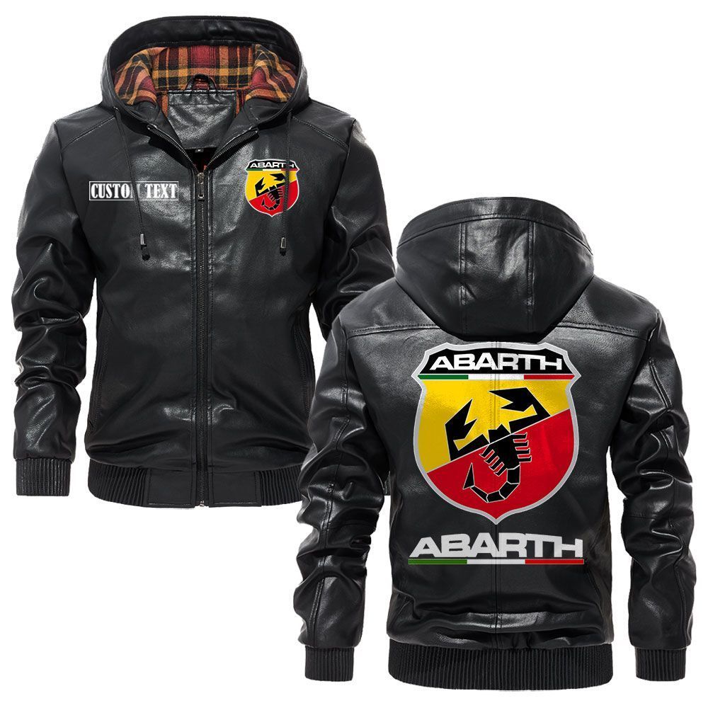 Abarth Logo Custom Name Leather Hoodie Jacket Comfortable Personalized Outerwear