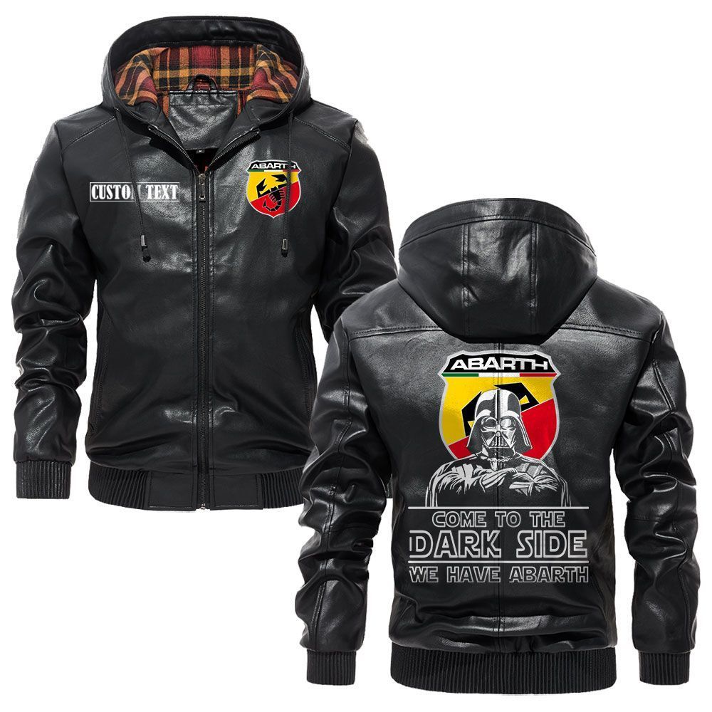 Abarth Logo Custom Name Leather Hoodie Jacket Warm Outerwear with Star Wars Theme