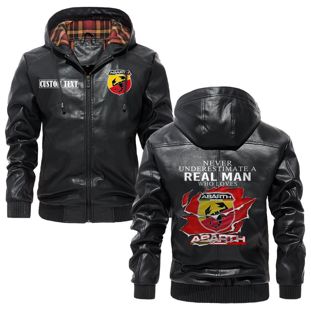 Abarth Logo Custom Name Leather Hoodie Jacket A Real Man Who Loves