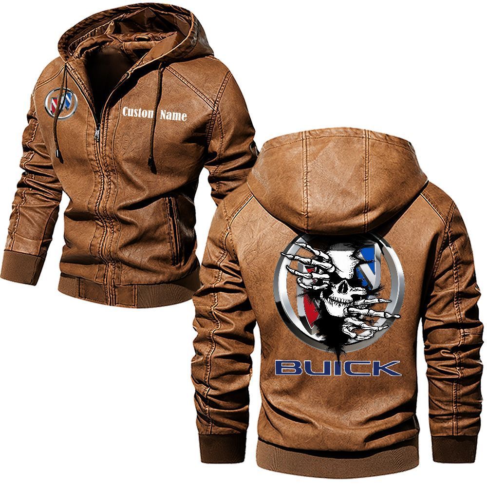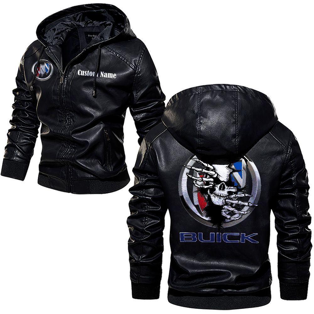 Buick Logo Custom Name Leather Hoodie Jacket Warm Outerwear with Skull Design