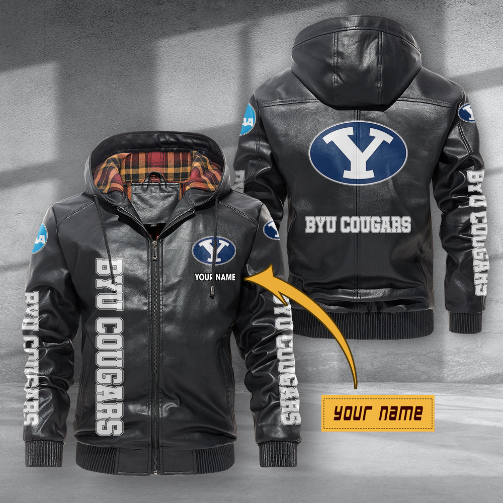 Byu Cougars Leather Hoodie Jacket Football Leather Jacket