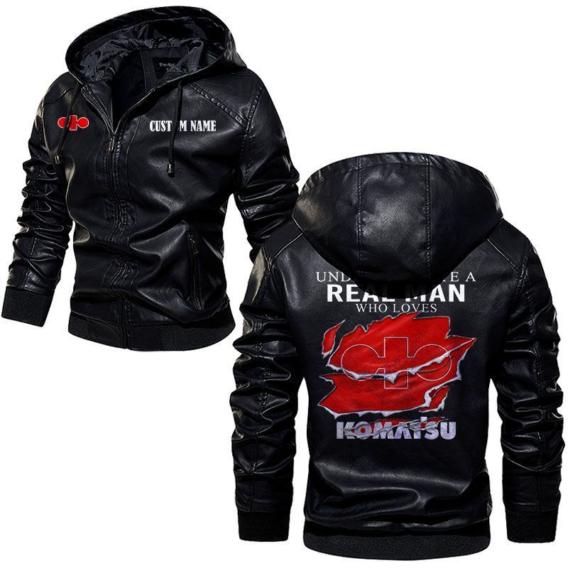 Never Underestimate A Real Man Who Loves Komatsu Leather Hoodie Jacket