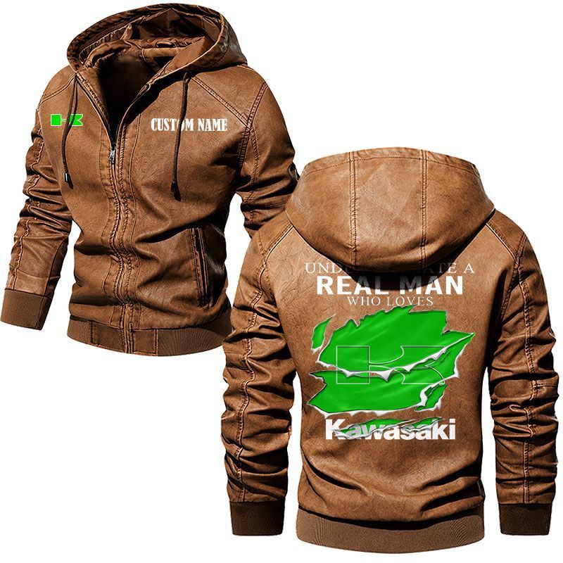 Never Underestimate A Real Man Who Loves Kawasaki Leather Hoodie Jacket