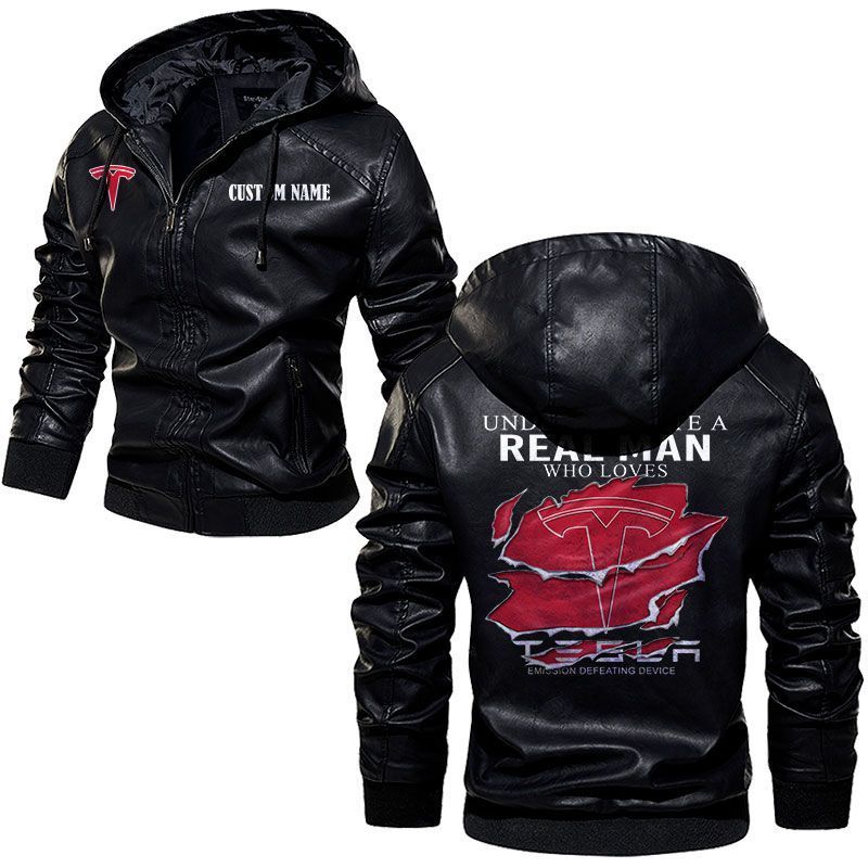 Never Underestimate A Real Man Who Loves Tesla Motors Leather Hoodie Jacket