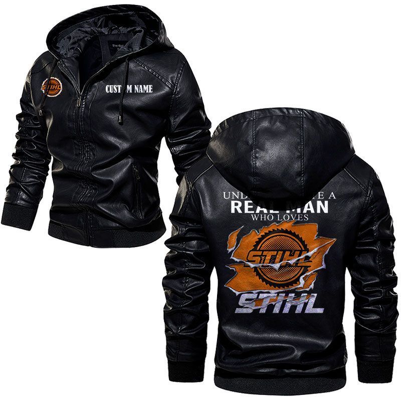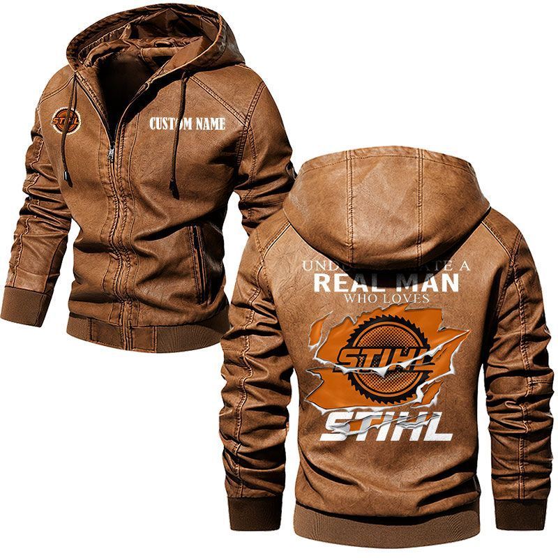 Never Underestimate A Real Man Who Loves Stihl Leather Hoodie Jacket