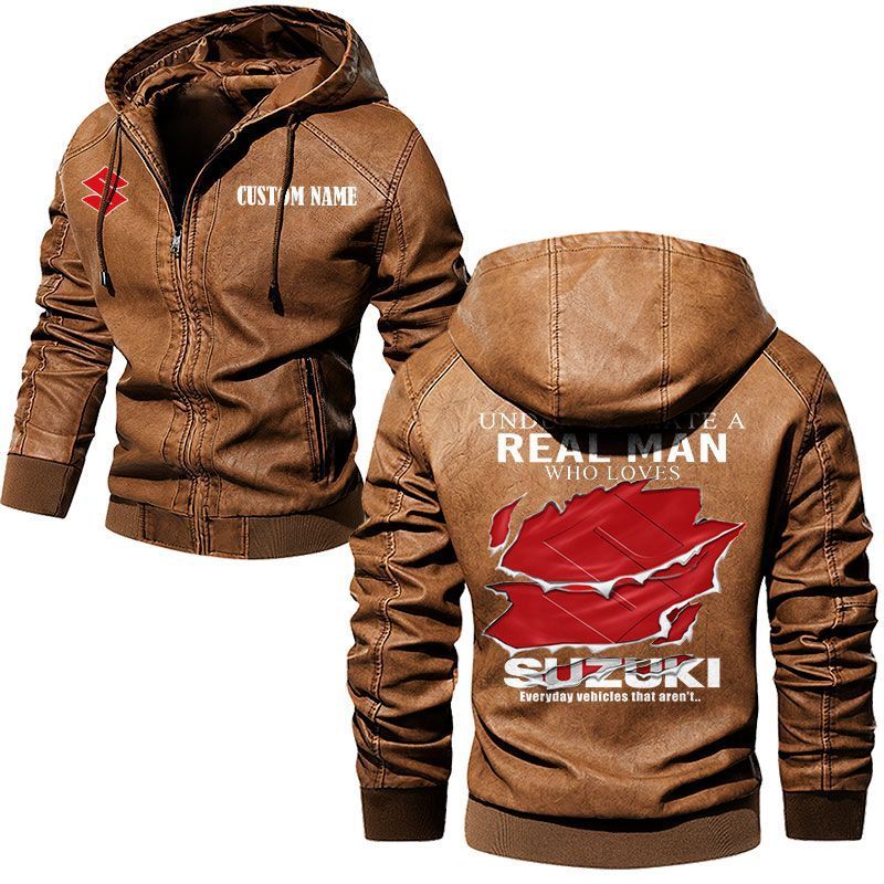 Never Underestimate A Real Man Who Loves Suzuki Leather Hoodie Jacket