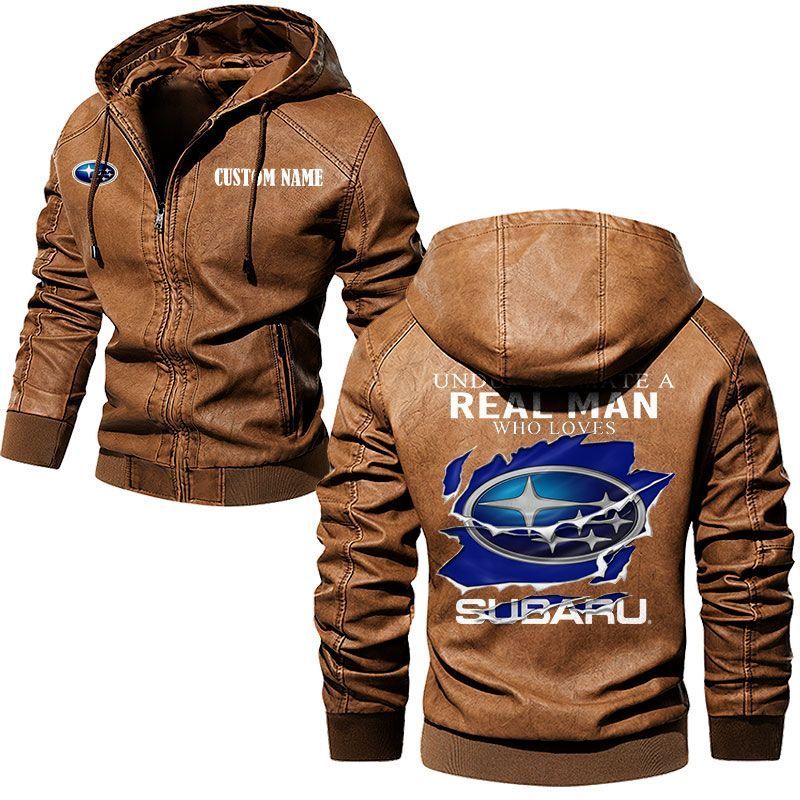 Never Underestimate A Real Man Who Loves Subaru Leather Hoodie Jacket
