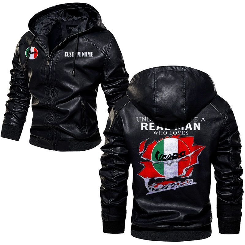 Never Underestimate A Real Man Who Loves Vespa Leather Hoodie Jacket