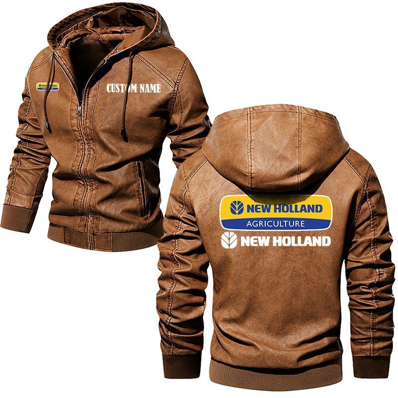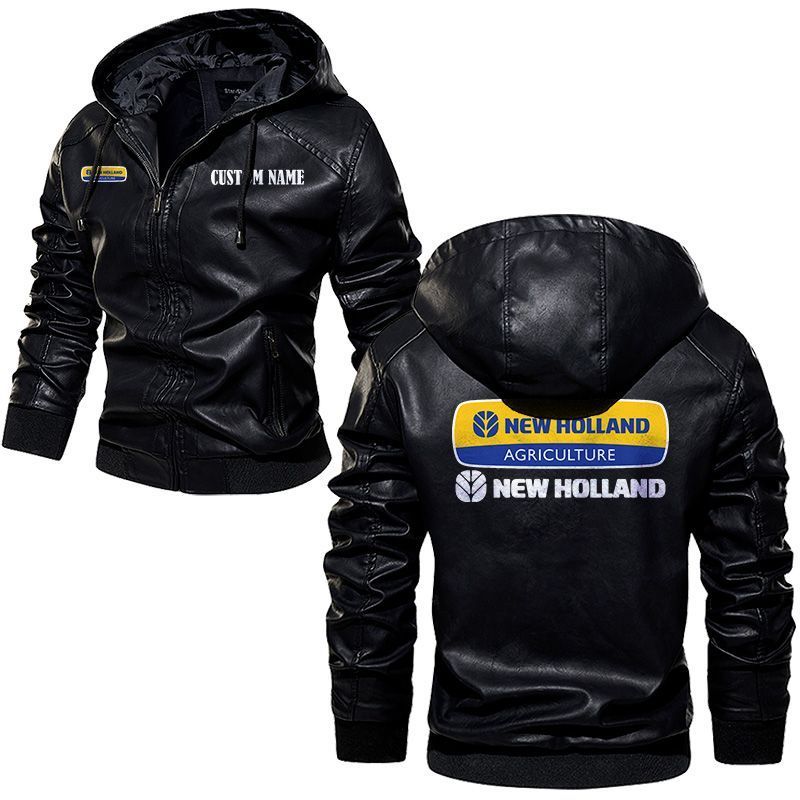 New Holland Agriculture Custom Name Skull Biker Car Driver Personalized Leather Jacket For Men Women