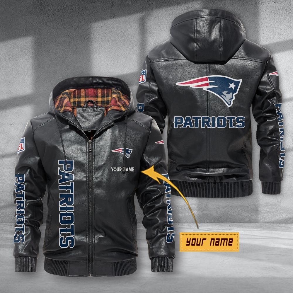 New England Patriots Leather Hoodie Jacket Football Leather Jacket