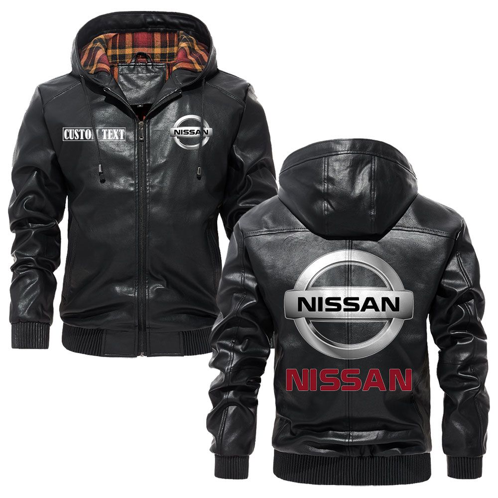 Nissan Logo Custom Name Leather Hoodie Jacket Comfortable Personalized Outerwear