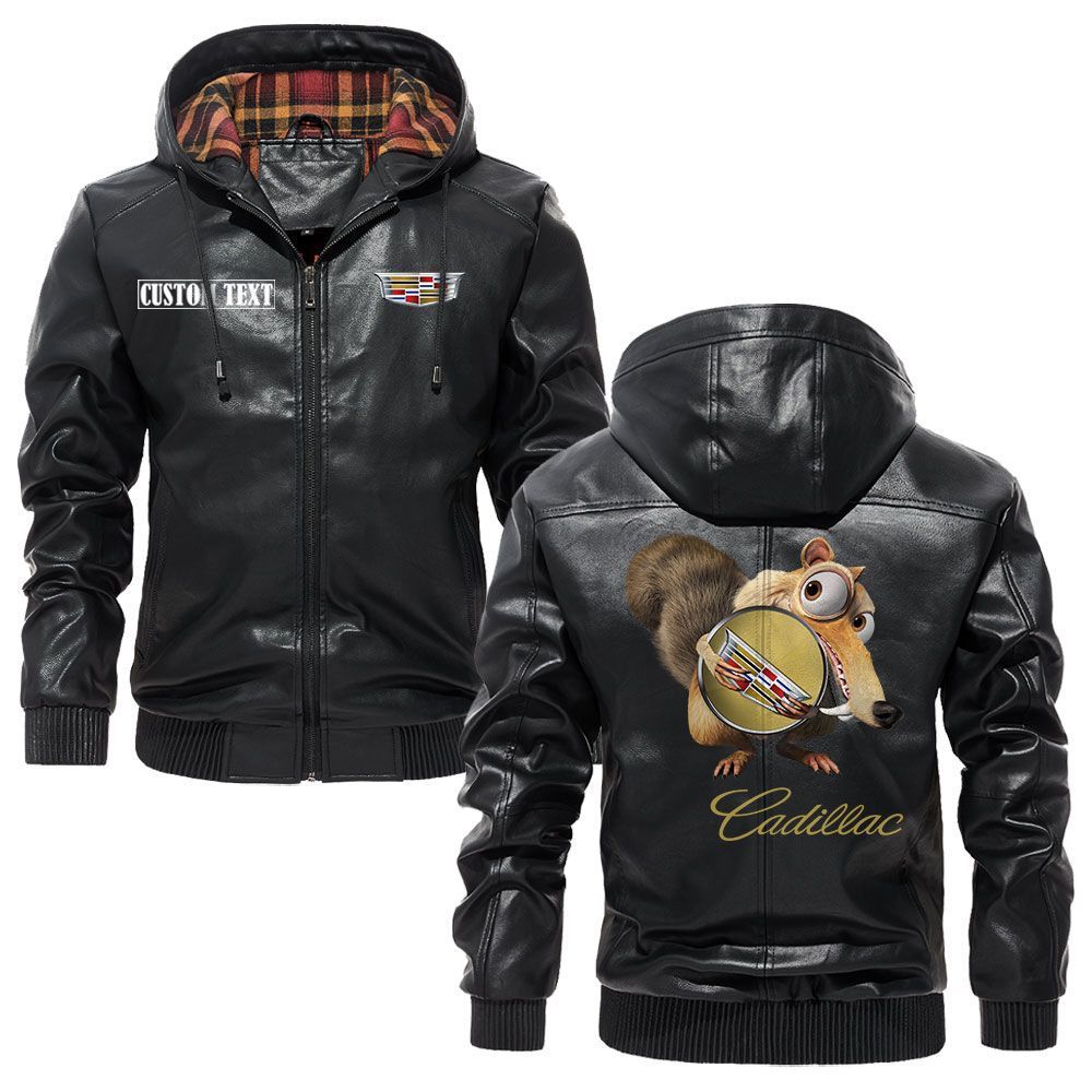 Cadillac Logo Custom Name Leather Hoodie Jacket Warm Outerwear with Ice Age Theme