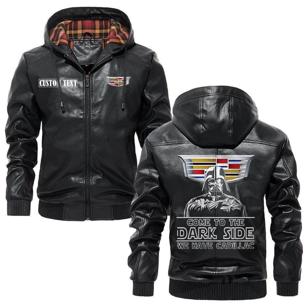 Cadillac Logo Custom Name Leather Hoodie Jacket Warm Outerwear with Star Wars Theme