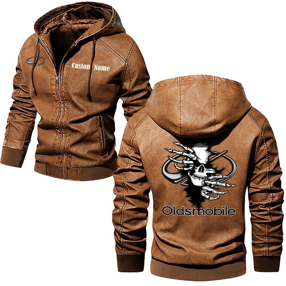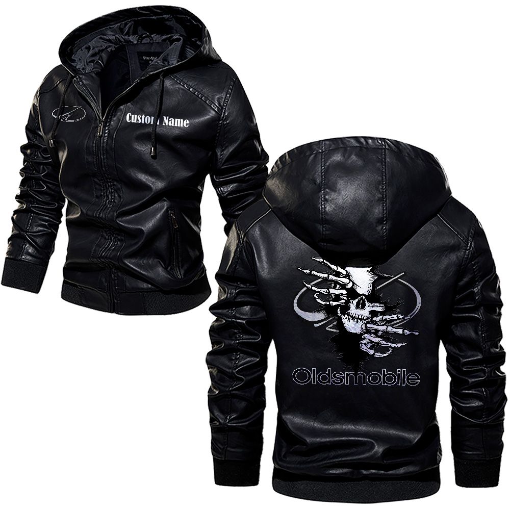 Oldsmobile Cutlass Logo Custom Name Leather Hoodie Jacket Warm Outerwear with Skull Design
