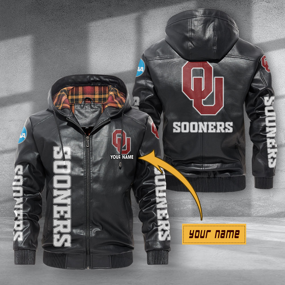 Oklahoma Sooners Leather Hoodie Jacket Football Leather Jacket