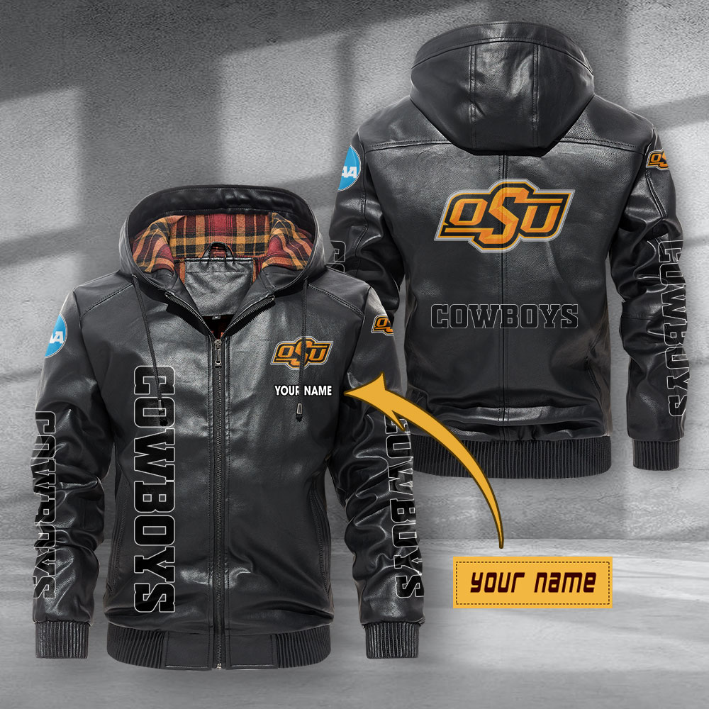 Oklahoma State Cowboys Leather Hoodie Jacket Football Leather Jacket