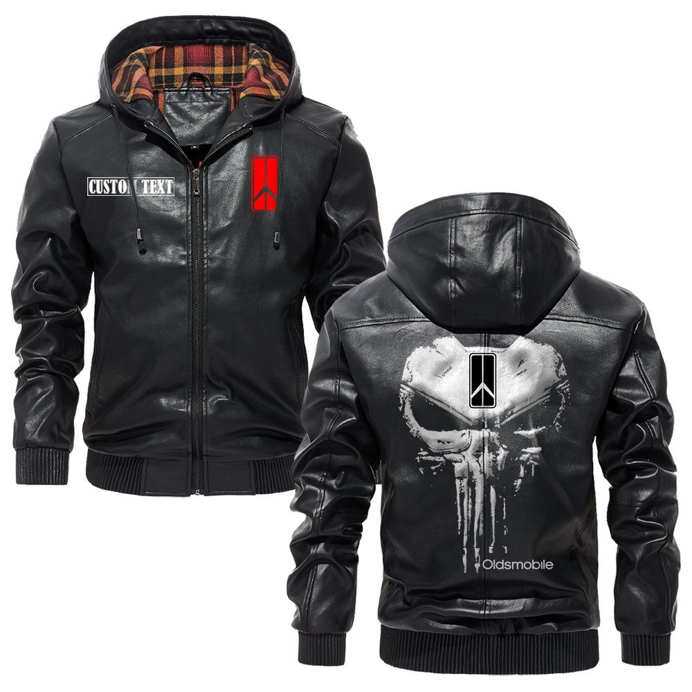 Oldsmobile Cutlass Logo Custom Name Leather Hoodie Jacket Warm Outerwear with Punisher Skull Design