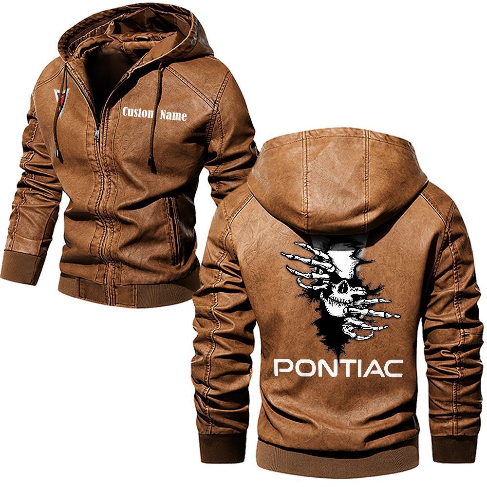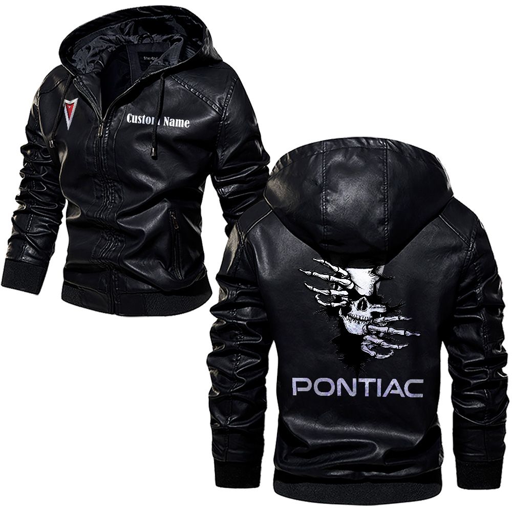 Pontiac Custom Name Skull Biker Car Driver Personalized Leather Jacket For Men Women