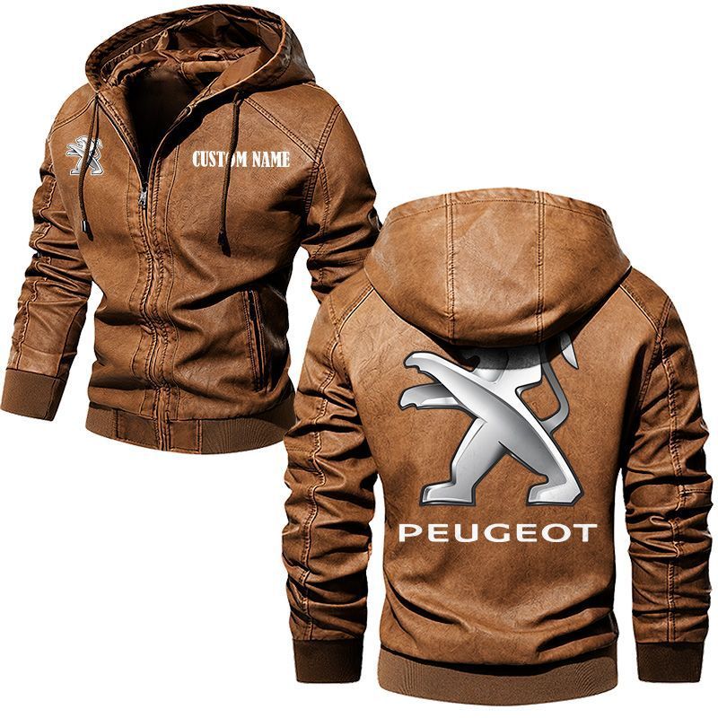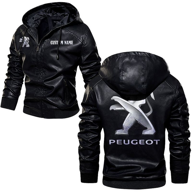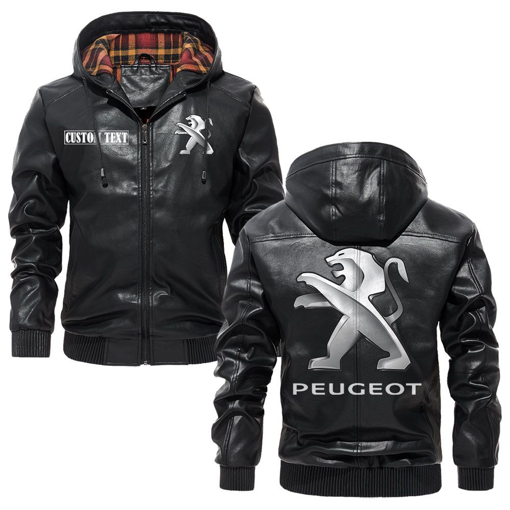Peugeot Logo Custom Name Leather Hoodie Jacket Comfortable Personalized Outerwear
