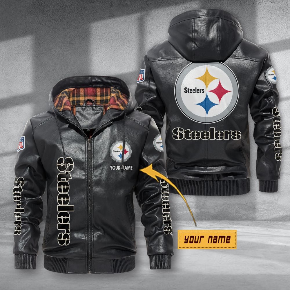 Pittsburgh Steelers Leather Hoodie Jacket Football Leather Jacket