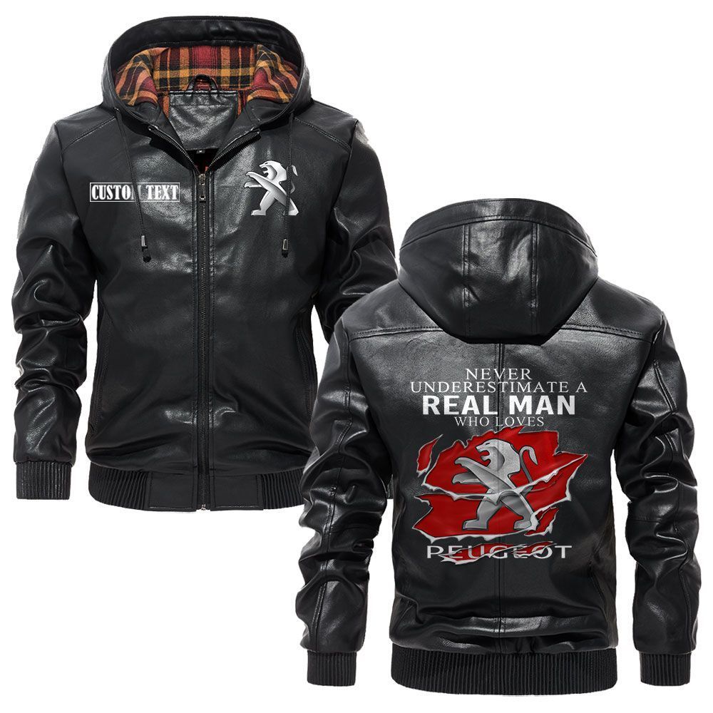 Peugeot Logo Custom Name Leather Hoodie Jacket A Real Man Who Loves