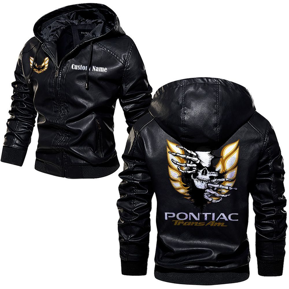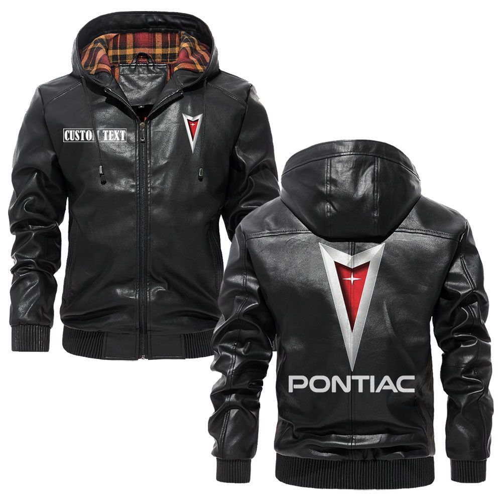 Pontiac Logo Custom Name Leather Hoodie Jacket Comfortable Personalized Outerwear