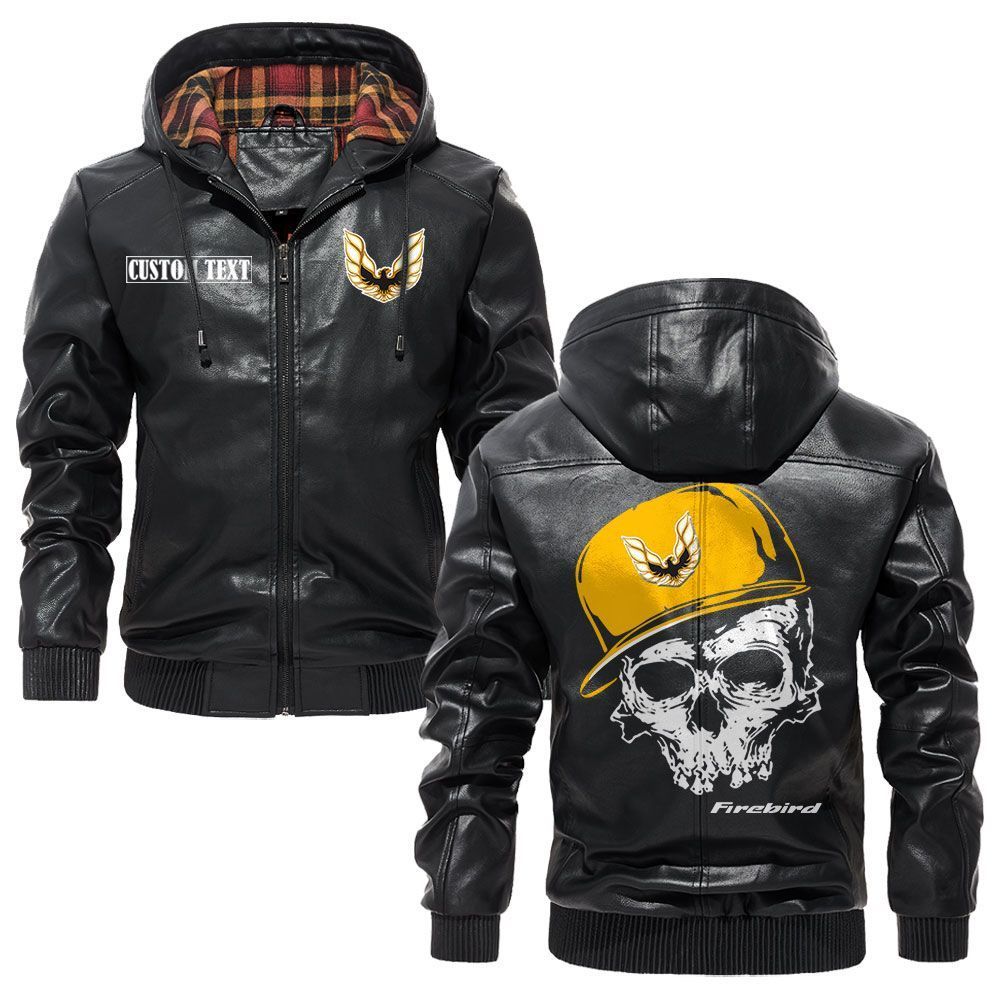 Pontiac Firebird Logo Custom Name Leather Hoodie Jacket Warm Outerwear with Skull Design