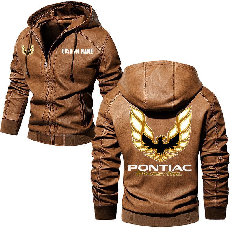 Pontiac Trans Am Logo Custom Name Leather Hoodie Jacket Comfortable Personalized Outerwear