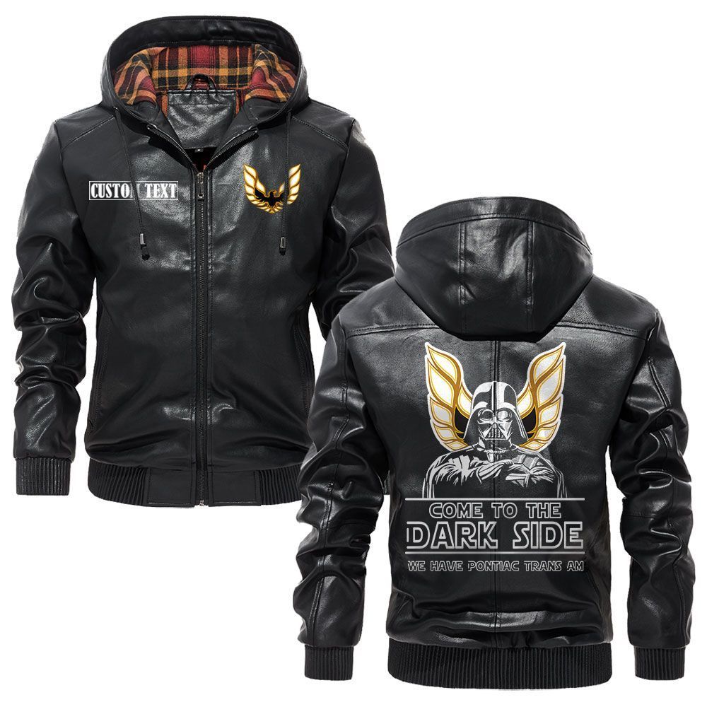 Pontiac Trans Am Logo Custom Name Leather Hoodie Jacket Warm Outerwear with Star Wars Theme