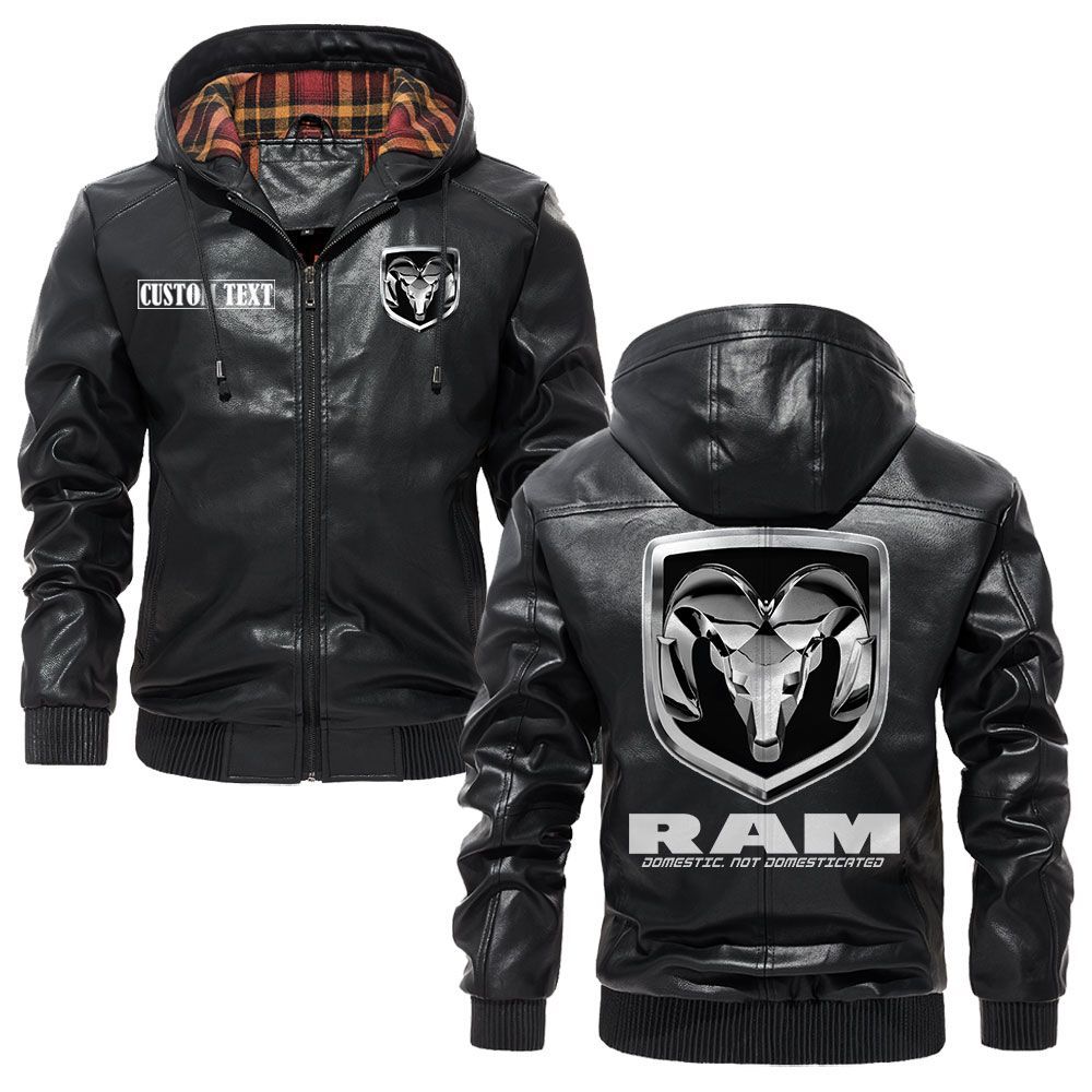 Ram Logo Custom Name Leather Hoodie Jacket Comfortable Personalized Outerwear