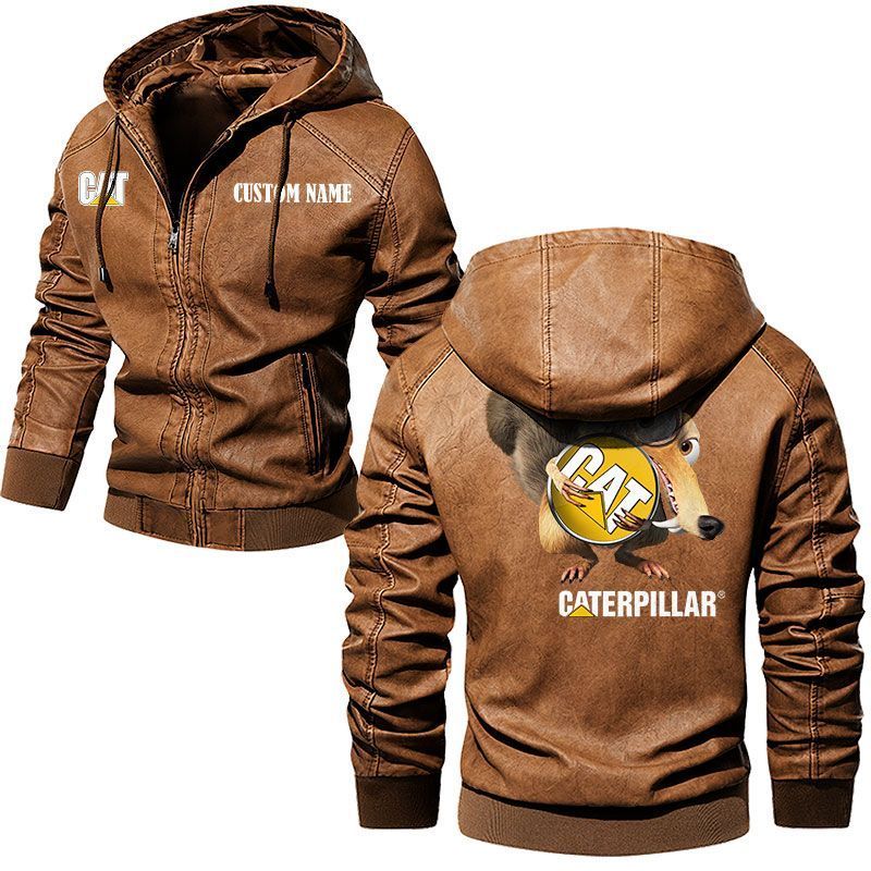 Scrat Squirrel In Ice Age Caterpillar Inc Leather Hoodie Jacket