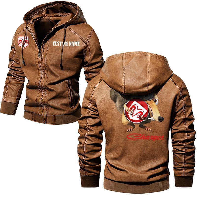 Scrat Squirrel In Ice Age Dodge Charger Leather Hoodie Jacket