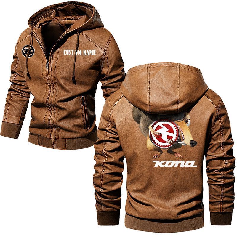Scrat Squirrel In Ice Age Kona Bicycle Company Leather Hoodie Jacket