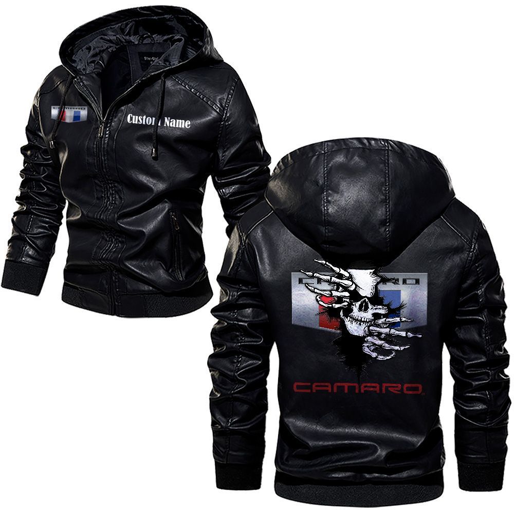 Chevrolet Camaro Custom Name Skull Biker Car Driver Personalized Leather Jacket For Men Women
