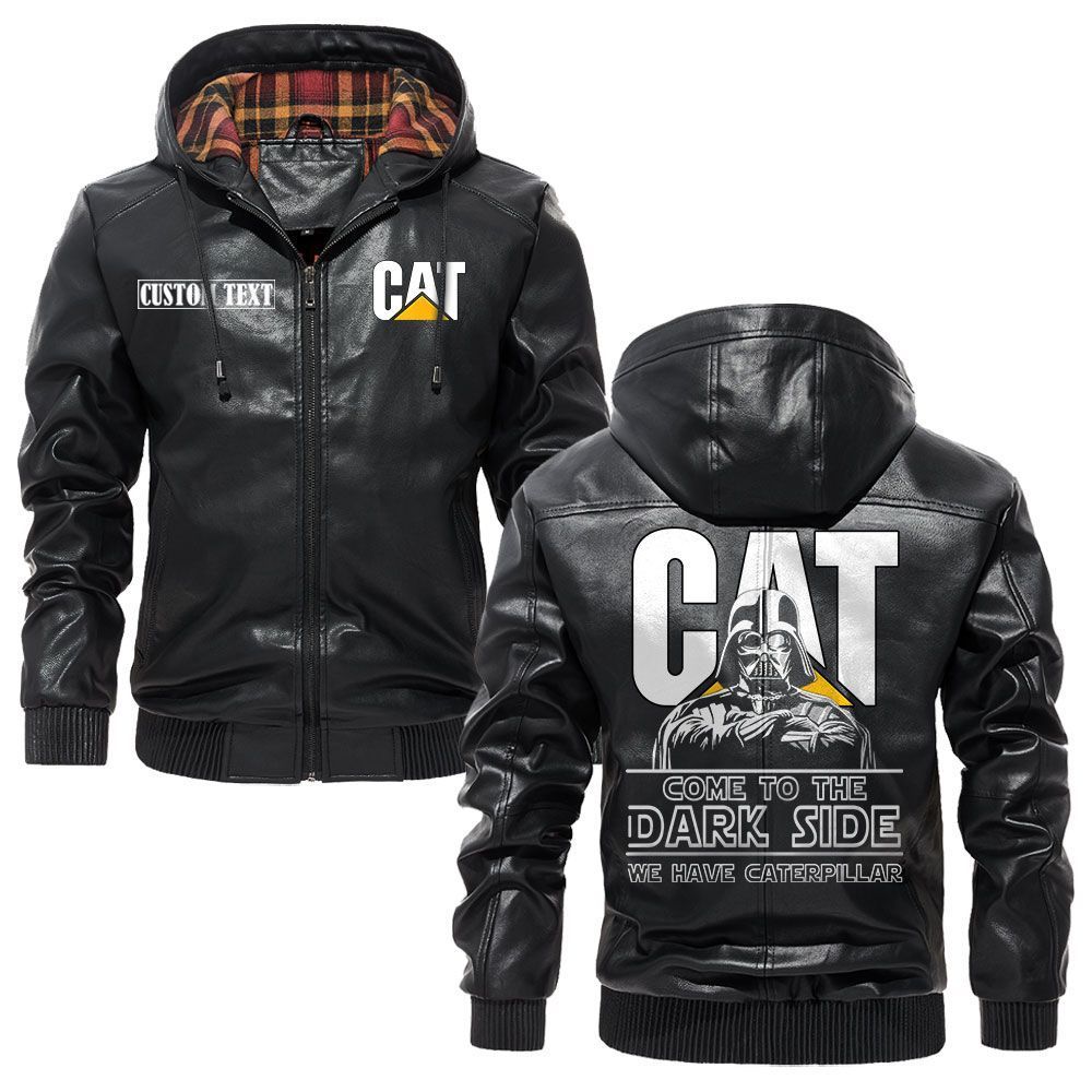 Caterpillar Inc Logo Custom Name Leather Hoodie Jacket Warm Outerwear with Star Wars Theme
