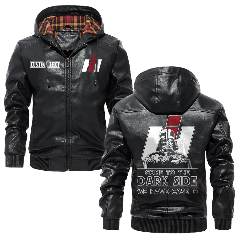 Case IH Logo Custom Name Leather Hoodie Jacket Warm Outerwear with Star Wars Theme