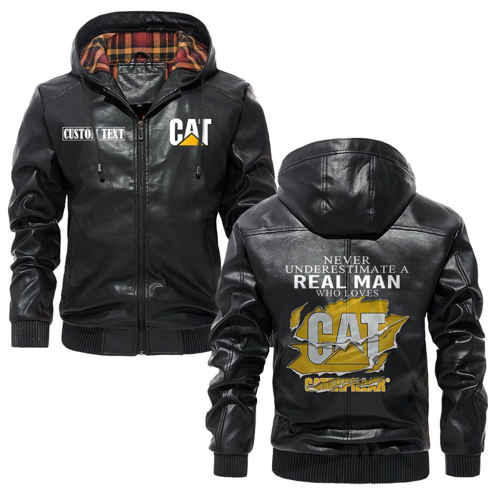 Caterpillar Inc Logo Custom Name Leather Hoodie Jacket A Real Man Who Loves