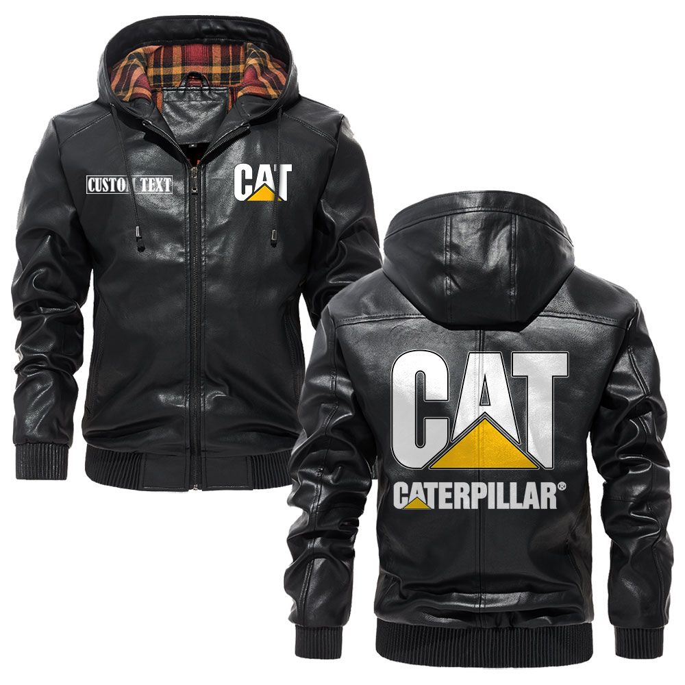 Caterpillar Inc Logo Custom Name Leather Hoodie Jacket Comfortable Personalized Outerwear