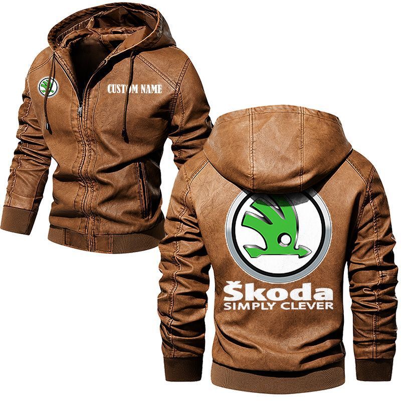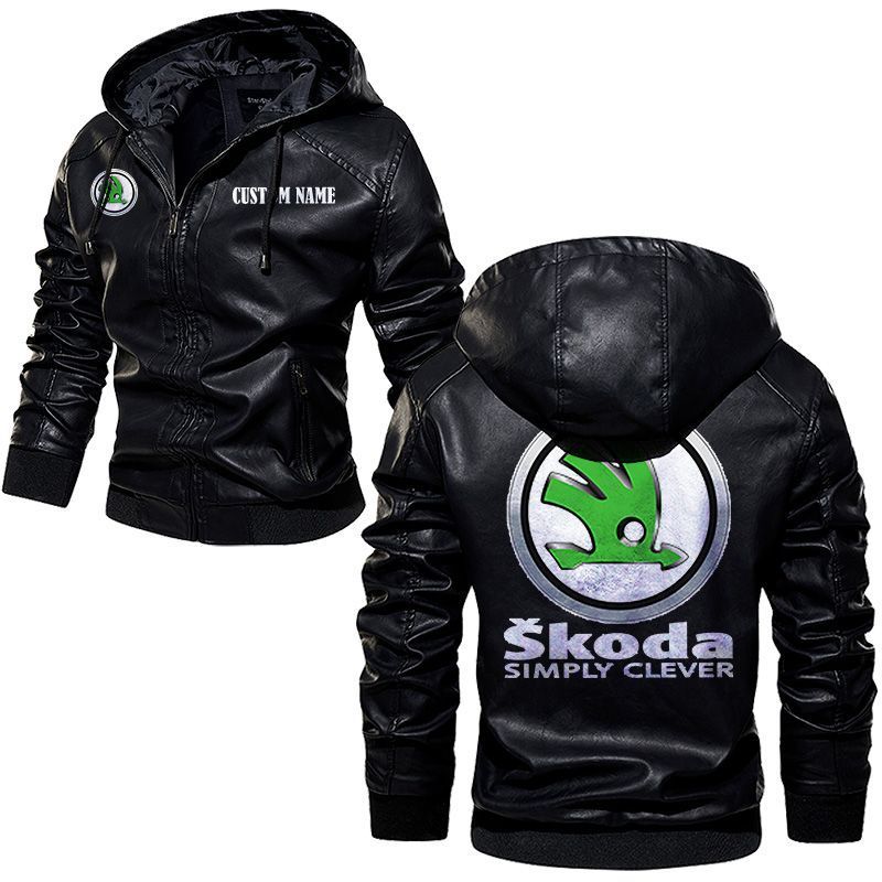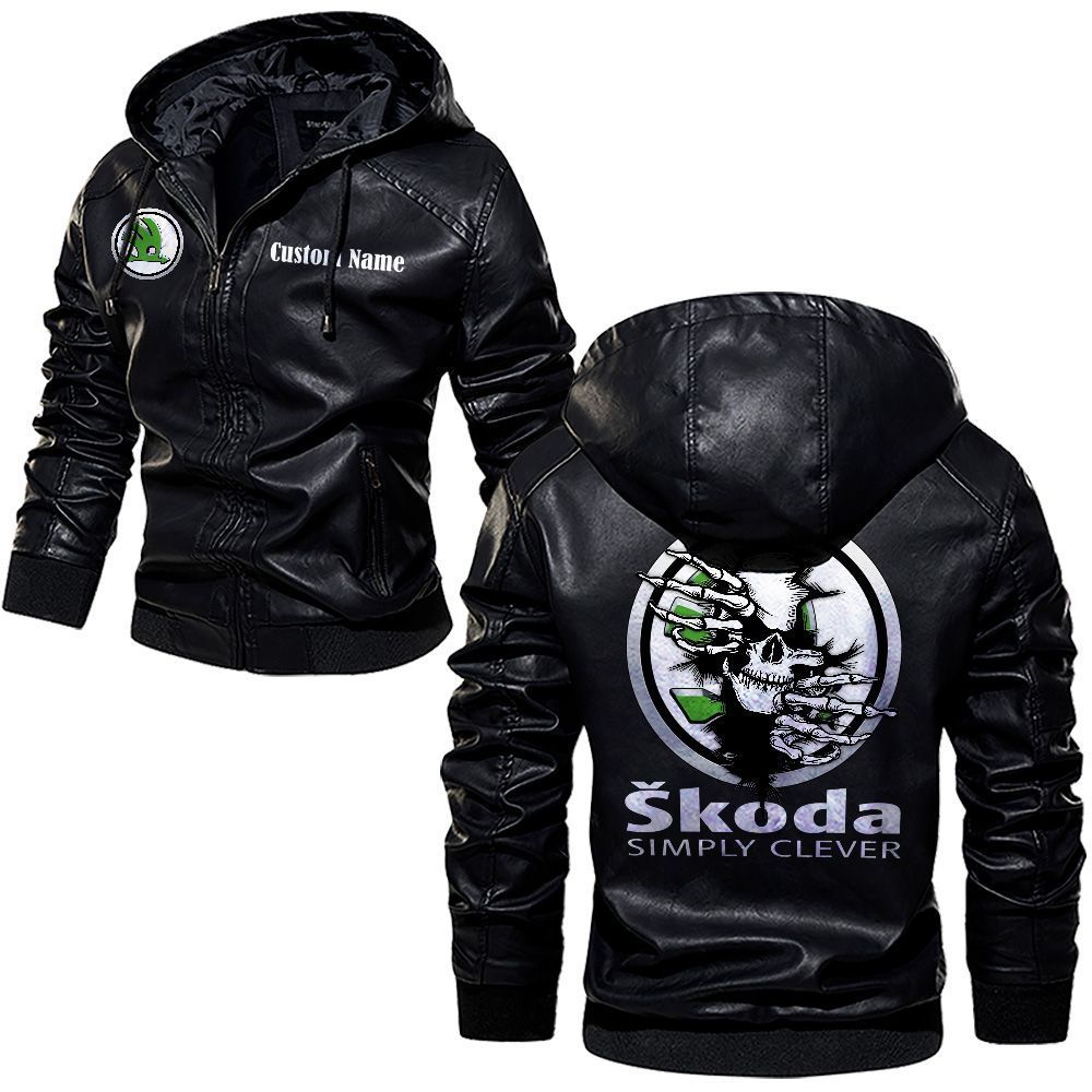 Skoda Custom Name Skull Biker Car Driver Personalized Leather Jacket For Men Women