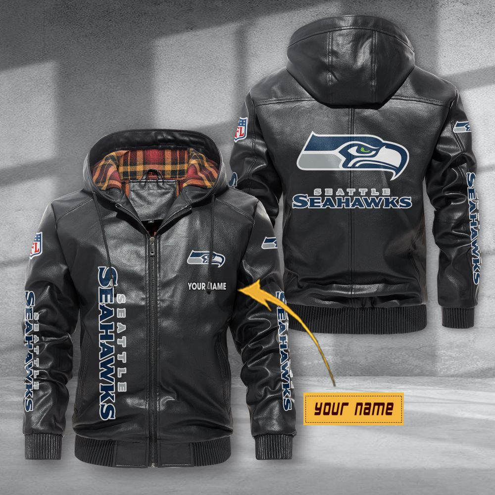 Seattle Seahawks Leather Hoodie Jacket Football Leather Jacket