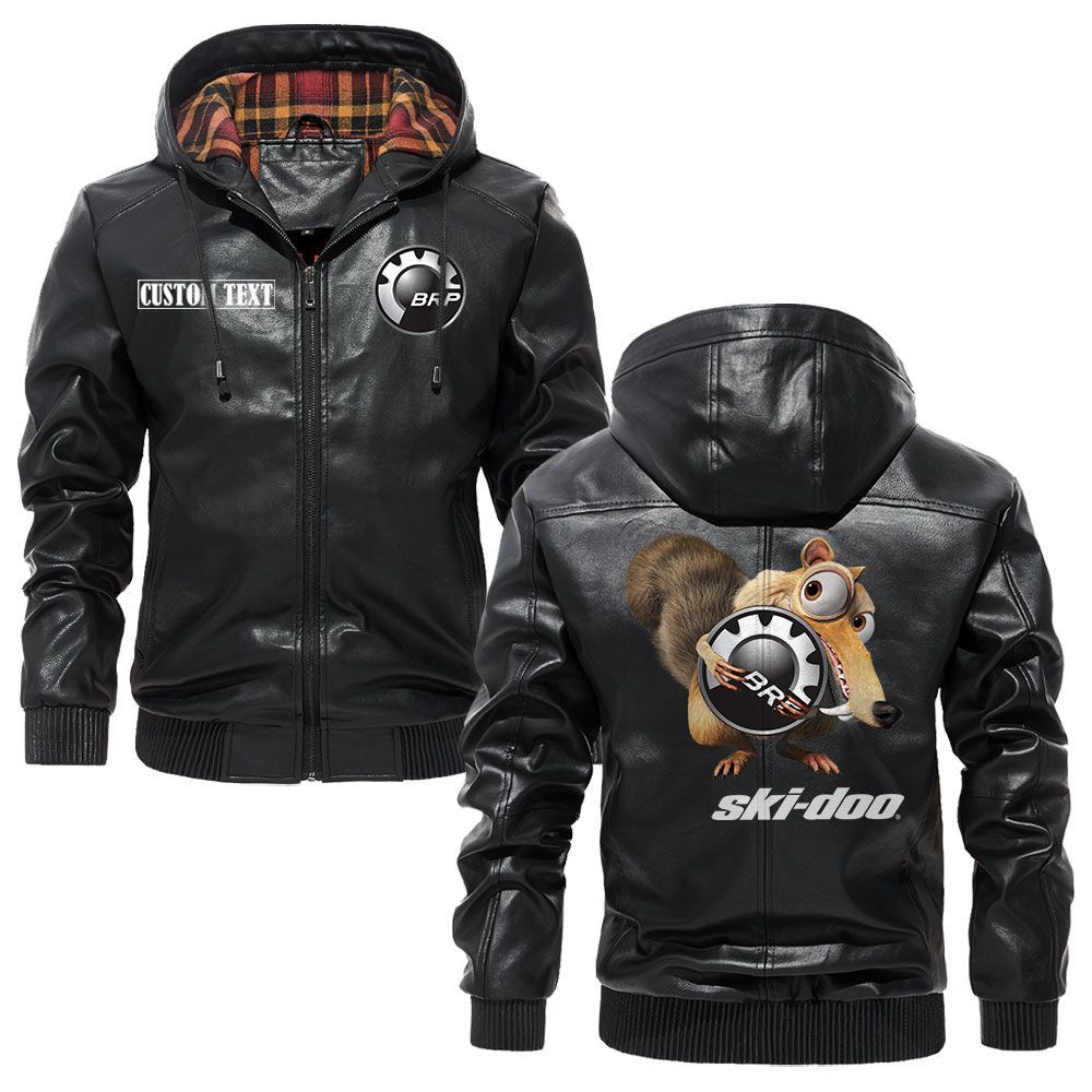Ski Doo Logo Custom Name Leather Hoodie Jacket Warm Outerwear with Ice Age Theme