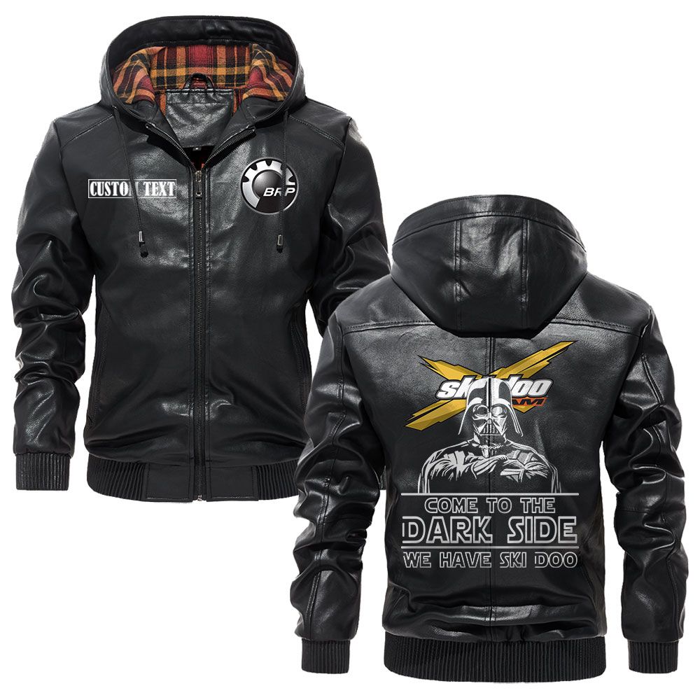 Ski Doo Logo Custom Name Leather Hoodie Jacket Warm Outerwear with Star Wars Theme