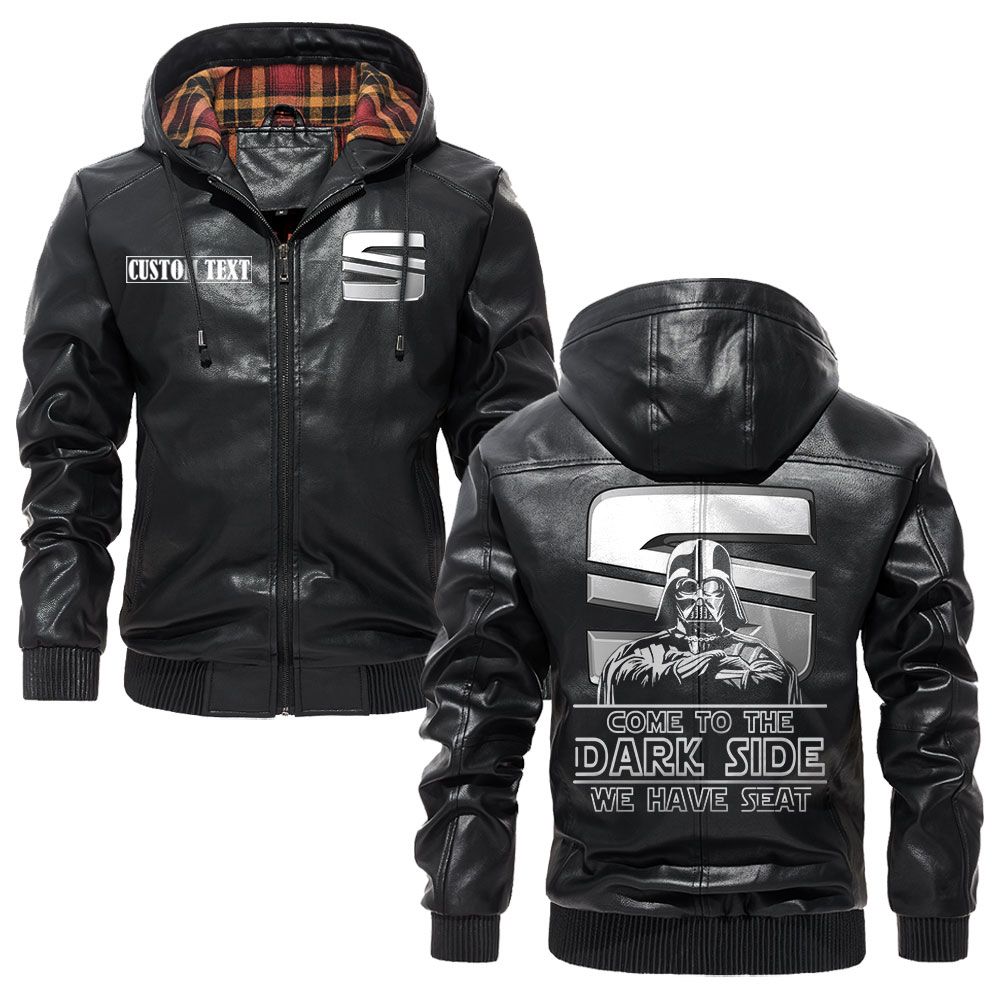 SEAT Logo Custom Name Leather Hoodie Jacket Warm Outerwear with Star Wars Theme